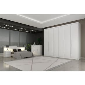 Guarda Roupa Casal 6 Portas 6 Gavetas - Orfeus-Branco - Móveis Novo Horizonte O Guarda Roupa Orfeus vai proporcionar um ambiente aconchegante mantendo um visual sofisticado e funcional. Composto por peças de extrema qualidade e com excelente espaço interno bem distribuídos, oferecendo máxima organização de forma prática. Fabricado em 100% MDF, 6 portas de bater, possui 6 gavetas com corrediças telescópicas, puxadores com acabamento amadeirado e cabideiros em alumínio. Amplo espaço interno. Aproveite! Faz parte do anúncio: 1 Guarda Roupa Casal 6 Portas 8 Gavetas - Orfeus - Móveis Novo Horizonte Obs. Objetos de decoração não inclusos Particularidades do guarda-roupa: Características: - 100% MDF; - Colunado em 25mm; - Puxadores com acabamento amadeirado; - 6 Gavetas internas com puxadores; - Corrediças telescópicas; - Dobradiça de pressão de 35mm; - Fundo inteiriço; - Cabideiros em alumínio; Dimensões: Altura: 2,36 metros Largura: 2,74 metros Profundidade: 56,5 centímetros Informações Importantes:. -Produtos podem apresentar diferenças de tonalidades entre a foto na tela e o produto real, devido a calibração de cor de tela. -Limpar com flanela ou pano macio. Não utilizar álcool. Não utilizar produtos abrasivos ou corrosivos. -Nós prezamos pela qualidade da entrega em primeiro lugar, trabalhamos com transportadoras altamente selecionadas e os melhores materiais de embalagem. -A montagem é de total responsabilidade do comprador. Antes de comprar, verifique o espaço disponível para a montagem. -Certifique-se de que o produto caiba em elevadores e vãos de escadas, não fazemos içamentos. Quaisquer despesas deste tipo ficam a cargo do cliente -Garantia de 3 meses contra defeitos de fabricação.