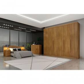 O Guarda Roupa Orfeus Ripado vai proporcionar um ambiente aconchegante mantendo um visual sofisticado e funcional. Composto por peças de extrema qualidade e com excelente espaço interno bem distribuídos, oferecendo máxima organização de forma prática. Fabricado em 100% MDF, 6 portas de bater com detalhe ripado, possui 6 gavetas com corrediças telescópicas, puxadores com acabamento amadeirado e cabideiros em alumínio. Amplo espaço interno. Aproveite!