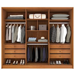 Particularidades do guarda-roupa: Características: - Produto em MDF; - 4 dobradiças de 26mm por porta. - 6 gavetas com corrediças telescópicas; - Cabideiros em alumínio; - Corrediças metálicas; - Puxadores externo em MDF; - Puxador interno em PVC;