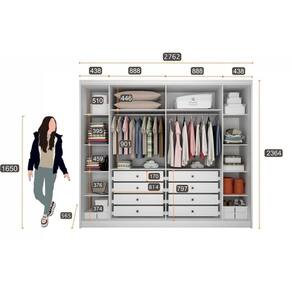 Particularidades do guarda-roupa: Características: - 100% MDF; - Colunado em 25mm; - Puxadores com acabamento amadeirado; - 8 Gavetas internas com puxadores; - Corrediças telescópicas; - Dobradiça de pressão de 35mm; - Fundo inteiriço; - Cabideiros em alumínio;