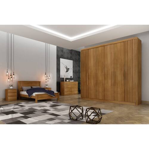 Guarda Roupa Casal 6 Portas 8 Gavetas - Santoro Ripado-Cumaru - Móveis Novo Horizonte O Guarda Roupa Santoro Ripado vai proporcionar um ambiente aconchegante mantendo um visual sofisticado e funcional. Composto por peças de extrema qualidade e com excelente espaço interno bem distribuídos, oferecendo máxima organização de forma prática. Fabricado em 100% MDF, 6 portas de bater, possui 8 gavetas com corrediças telescópicas, puxadores com acabamento amadeirado e cabideiros em alumínio. Amplo espaço interno. Aproveite! Faz parte do anúncio: 1 Guarda Roupa Casal 6 Portas 8 Gavetas - Santoro Ripado - Móveis Novo Horizonte Obs. Objetos de decoração não inclusos Particularidades do guarda-roupa: Características: - 100% MDF; - Colunado em 25mm; - Puxadores com acabamento amadeirado; - 8 Gavetas internas com puxadores; - Corrediças telescópicas; - Dobradiça de pressão de 35mm; - Fundo inteiriço; - Cabideiros em alumínio; Dimensões: Altura: 2,36 metros Largura: 2,43 metros Profundidade: 56,5 centímetros Informações Importantes:. -Produtos podem apresentar diferenças de tonalidades entre a foto na tela e o produto real, devido a calibração de cor de tela. -Limpar com flanela ou pano macio. Não utilizar álcool. Não utilizar produtos abrasivos ou corrosivos. -Nós prezamos pela qualidade da entrega em primeiro lugar, trabalhamos com transportadoras altamente selecionadas e os melhores materiais de embalagem. -A montagem é de total responsabilidade do comprador. Antes de comprar, verifique o espaço disponível para a montagem. -Certifique-se de que o produto caiba em elevadores e vãos de escadas, não fazemos içamentos. Quaisquer despesas deste tipo ficam a cargo do cliente -Garantia de 3 meses contra defeitos de fabricação.