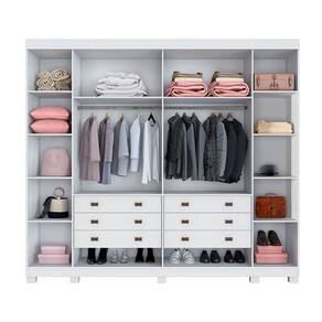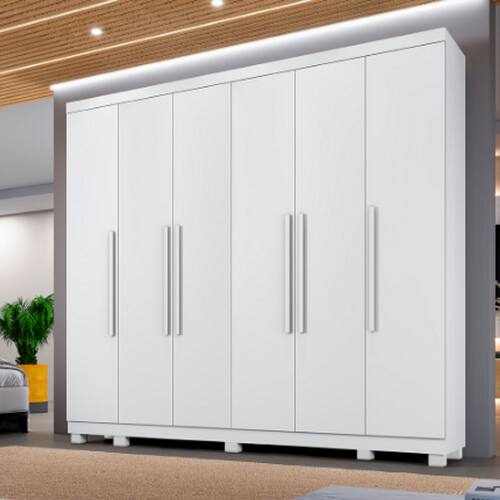 Guarda Roupa Casal Atlanta O Guarda Roupa Atlanta é um daqueles móveis feitos para organizar e embelezar o ambiente. Ele tem compartimentos que ajudam a arrumar o quarto com facilidade. Com visual elegante, o móvel chama a atenção. A primeira vista, o que costuma impressionar é seu estilo moderno, que se destaca pela simplicidade das linhas retas e as portas sem detalhes, com puxadores em madeira. Medidas do Produto Montado:Altura: 242 cmLargura: 270 cmProfundidade: 54 cm.Características:- Produzido em mdf. Esse material é durável contra a ação do tempo e firme contra a envergadura por peso;- Corrediças telescópicas nas gavetas que permitem um deslize amplo e suave no movimento de puxar;- Possui cabideiro em alumínio,- Espaço reservado para roupas longas;- Prateleiras espaçosas para organização de camisas, calças, acessórios e até o jogo de cama;- 6 Gavetas;- Puxadores internos;- Puxadores amadeirados; - Kit de pé incluso- Necessário Montagem: Sim.Recomendações de uso, manutenção e limpeza: Pano levemente umedecido com sabão neutro.Informações importantes:- Não responsabilizamos pela montagem e instalação dos produtos. A montagem deve ser realizada por um profissional, conforme as instruções do manual do produto. A responsabilidade da montagem é do consumidor.- Os Objetos que ambientam as imagens não acompanham o produto.- Pode haver alguma diferença de tonalidade entre a foto e o produto, devido ao tratamento de imagens e a calibração do seu monitor ou dispositivo.- A entrega é realizada por transportadora, não nos responsabilizamos, no ato da entrega por desmontagens, subir escadas/elevadores ou transporte por guincho para apartamentos. Eventuais despesas são de responsabilidade do consumidor.- Antes de comprar o seu produto verifique as medidas e o local onde pretende instalar.