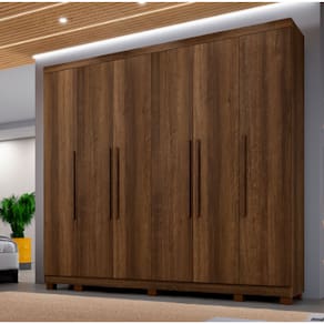 Medidas do Produto Montado:Altura: 242 cmLargura: 270 cmProfundidade: 54 cm.Características:- Produzido em mdf. Esse material é durável contra a ação do tempo e firme contra a envergadura por peso;- Corrediças telescópicas nas gavetas que permitem um deslize amplo e suave no movimento de puxar;- Possui cabideiro em alumínio,- Espaço reservado para roupas longas;- Prateleiras espaçosas para organização de camisas, calças, acessórios e até o jogo de cama;- 6 Gavetas;- Puxadores internos;- Puxadores amadeirados;