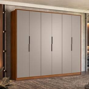 Guarda Roupa Casal 6 Portas Atrice, moderno e sofisticado, permite guardar muitas coisas e ainda ter locais separados para o casal. Estrutura em MDP de 12, 15 e 18 mm, e conta com pintura em acabamento UV (Fosco). Composto por 6 portas articuladas com dobradiças metálicas e longos puxadores em alumínio, as portas laterais dão acesso há 6 gavetas internas com corrediças telescópicas e detalhes curvos que dispensam puxadores, além disso, há um cabideiro metálico para roupas de até médio comprimento, um espaço para os sapatos e um maleiro para as roupas de cama, já nas portas centrais, há outro cabideiro metálico para roupas longas, 4 prateleiras ótimas para roupas dobradas ou toalhas, e mais um maleiro. Além de ampla capacidade de armazenamento, foi desenvolvido para oferecer total conforto e comodidade para você. Este móvel chegará na sua casa separado em 6 volumes.