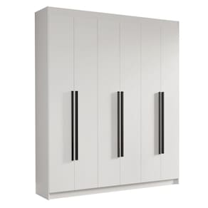 Possui uma pintura de alta resistência, que garante durabilidade e um acabamento impecável por muito mais tempo. A estrutura e as portas são na coloração Branca e os puxadores em Preto, criando um visual sofisticado que se adapta a qualquer estilo de decoração. Os puxadores de 80 cm, fabricados em MDF, são um dos grandes diferenciais, trazendo um design alongado e moderno.