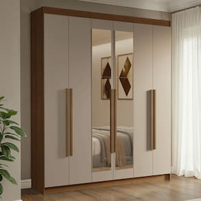 - Um (1) Guarda-Roupa com seis (6) portas batentes, sendo quatro (4) de madeira e duas (2) com espelho