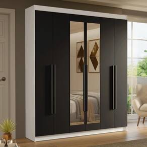 - Um (1) Guarda-Roupa com seis (6) portas batentes, sendo quatro (4) de madeira e duas (2) com espelho.