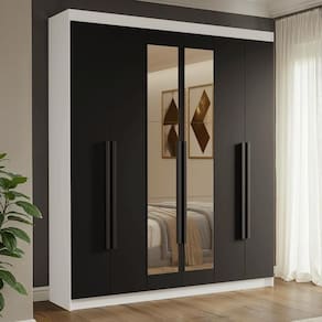 - Um (1) Guarda-Roupa com seis (6) portas batentes, sendo quatro (4) de madeira e duas (2) com espelho
