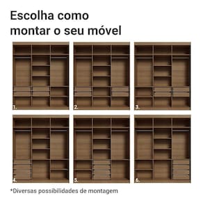 O Guarda-Roupa Venus oferece versatilidade para organizar seu espaço da melhor forma. Com dobradiças com amortecimento, as portas fecham suavemente. As gavetas com corrediças telescópicas permitem abertura total, enquanto o amplo maleiro é perfeito para itens maiores. Além disso, você pode ajustar as gavetas e prateleiras para personalizar o interior conforme suas necessidades.