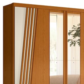 Com portas laterais em diagonal e acabamento ripado, esse guarda roupa moderno vai garantir um toque de decoração no seu quarto. Mas não é apenas a estética que impressiona, já que as portas contam com dobradiças slow motion, garantindo um fechamento suave e silencioso. Além disso, você encontrará 4 gavetas com corrediças telescópicas, que proporcionam um deslize suave e sem esforço. Já a funcionalidade e comodidade são revelados no amplo compartimento interno, com cabideiros em alumínio e nichos centrais, perfeitos para organizar suas roupas e objetos pessoais. Ah, e não se preocupe com a durabilidade, pois os pés estão inclusos e são ótimos aliados para manter o seu móvel longe da umidade do chão. Demais não é mesmo?!