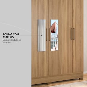 Guarda Roupa Casal 6 Portas Com Espelho e 3 Gavetas Prático Demóbile