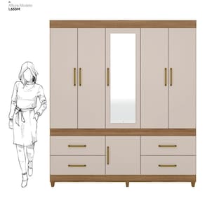 O Guarda Roupa Casal Guarujá da Demóbile oferece excelente armazenamento com cabideiros para calças e camisas, prateleiras para toalhas e acessórios, gavetas externas para roupas íntimas e um maleiro para travesseiros e cobertores. Ele ainda possui um compartimento para sapatos e portas com espelho que ampliam o ambiente. Perfeito para quem busca organização e praticidade no dia a dia.