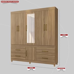 Guarda Roupa Casal 6 Portas Com Espelho e 4 Gavetas Guarujá Demóbile