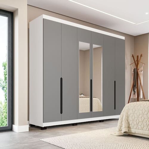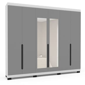 Guarda-roupa Casal 6 Portas com Espelho Madrid Cinza/Branco