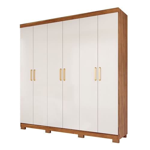 Guarda-roupa Casal 6 Portas com Pé e Espelho Interno Giratório 199cm 100% Mdf Paraty Espresso Móveis Cinamomo/Off White - Bege