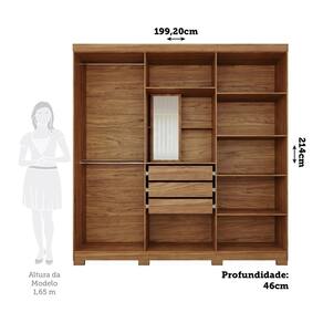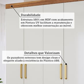 O Guarda Roupa Paraty é 100% MDF e agrega elegância ao seu ambiente, com divisórias internas pensadas para uma perfeita organização e uso compartilhado. Portas com puxadores em ABS. Na parte central contém 1 porta giratória com espelho e prateleiras que fazem a função de uma penteadeira. Suas 3 gavetas internas possuem corrediças metálicas telescópicas, os cabideiros são em alumínio com suportes metálicos. Acompanha pés com 5cm de altura, facilitando a limpeza!