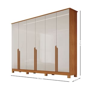 Características: Estrutura em 100% MDF Espaço interno com Nicho no sistema ELE e ELA, 6 Portas 6 Gavetas Corrediças telescópicas. Nichos com 6 prateleiras Espaço para roupas longas Puxadores em madeira envelopada
