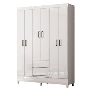 Guarda Roupa Casal 6 portas com pés Fit Branco Brilho: Um guarda-roupa completo para quem precisa de espaço: 6 portas, gavetas e cabideiros para organizar roupas de toda a família. Visual bonito, acabamento brilhante e pés que facilitam a limpeza tornam esse modelo uma escolha prática e elegante.