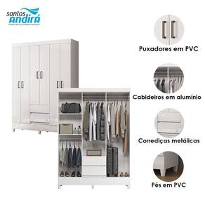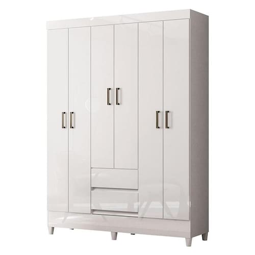 Guarda Roupa Casal 6 portas com pés Fit Branco Brilho - Santos Andirá