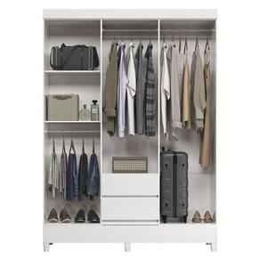 Guarda Roupa Casal 6 portas com pés Fit Branco Brilho: Um guarda-roupa completo para quem precisa de espaço: 6 portas, gavetas e cabideiros para organizar roupas de toda a família. Visual bonito, acabamento brilhante e pés que facilitam a limpeza tornam esse modelo uma escolha prática e elegante.