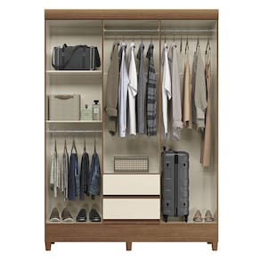 Guarda Roupa Casal 6 portas com pés Fit Jequitibá Off: Um guarda-roupa completo para quem precisa de espaço: 6 portas, gavetas e cabideiros para organizar roupas de toda a família. Visual bonito, acabamento brilhante e pés que facilitam a limpeza tornam esse modelo uma escolha prática e elegante.