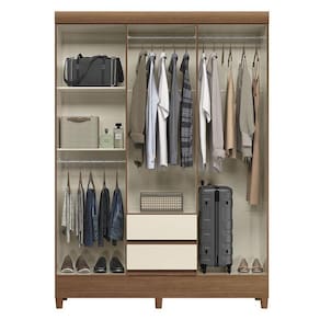 Guarda Roupa Casal 6 portas com pés Fit Jequitibá Off: Um guarda-roupa completo para quem precisa de espaço: 6 portas, gavetas e cabideiros para organizar roupas de toda a família. Visual bonito, acabamento brilhante e pés que facilitam a limpeza tornam esse modelo uma escolha prática e elegante.