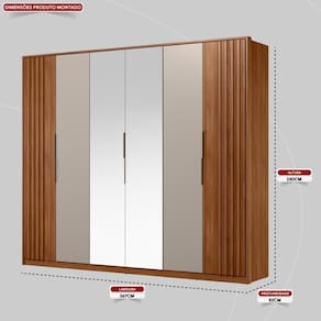 Guarda Roupa Casal 6 Portas Com Ripado e Com Espelho 6 Gavetas Atrice Demóbile