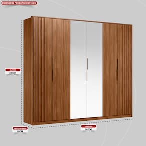 Guarda Roupa Casal 6 Portas Com Ripado e Com Espelho 6 Gavetas Equador Demóbile