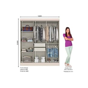 Dimensões(Cm): Comnto(Profundidade): 163cm x Largura: 44cm x Altura: 200cm