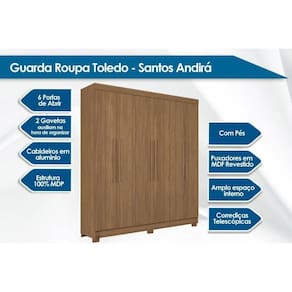 Guarda Roupa Casal 6 Portas e 2 Gavetas c/ Pés Toledo Jatobá - Santos Andirá