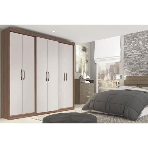 Tipo de Cabideiro - Aéreo Material dos Cabideiros - Cabideira Metálico Tipo de Porta do Guarda-Roupa - Portas de Correr Material das Portas - Portas em MDP Quantidade de Portas - 6 Portas de Abrir Material das Gavetas - Gavetas em MDP Tipo de Corrediça - c/ Corrediças Metálicas Quantidade de Gavetas - 2 Gavetas Material das Prateleiras - Prateleiras em MDP Quantidade de Prateleiras - 9