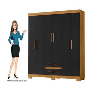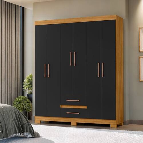 Guarda-roupa Casal 6 Portas e 2 Gavetas Saint Carvalho Americano/Preto
