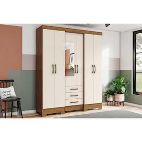 Guarda Roupa Solteiro 6 Portas e 3 Gavetas c/ Espelho Briz B23 Branco - Henn