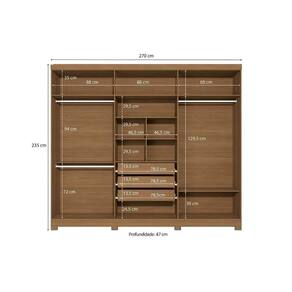 Dimensões(Cm): Comprimento(Profundidade): 47cm x Largura: 270cm x Altura: 235cm