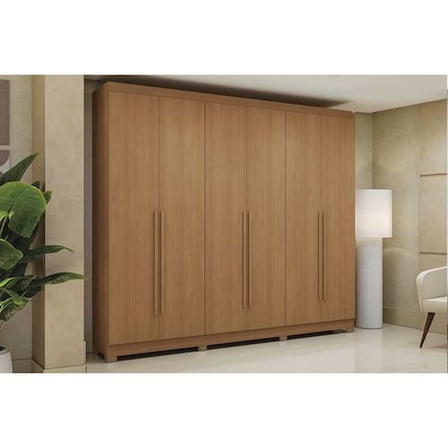 Material dos Cabideiros - Cabideira Metálico Tipo de Porta do Guarda-Roupa - Portas de Bater Tipo de Dobradiças - Dobradiça Slowmotion Quantidade de Portas - 6 Portas de Abrir Tipo de Corrediça - c/ Corrediças Telescópicas Quantidade de Gavetas - 3 Tipo dos Pés - Pés em Polipropileno Quantidade de Pés - 8 pés