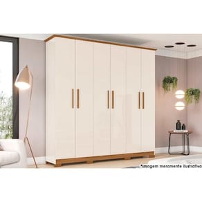 Guarda Roupa Casal 6 Portas e 3 Gavetas c/ Pés Cover Off White/Nature - Henn Marca: HENN