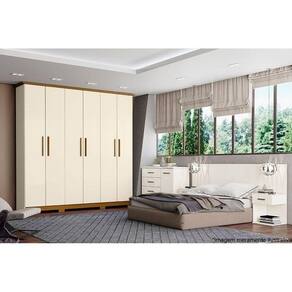 Guarda Roupa Casal 6 Portas E 3 Gavetas C/ Pés Cover Off White/nature - Henn