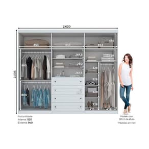 Dimensões(Cm): Comprimento(Profundidade): 262cm x Largura: 54cm x Altura: 231cm