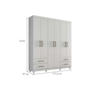 Material dos Cabideiros - Cabideiro de Madeira Material das Portas - Portas em MDF/MDP Quantidade de Portas - 6 Portas de Abrir Tipo de Espelho - Sem Espelho Material das Gavetas - Gavetas em MDF/MDP Tipo de Corrediça - c/ Corrediças Telescópicas Quantidade de Gavetas - 4 Gavetas Quantidade de Prateleiras - 6