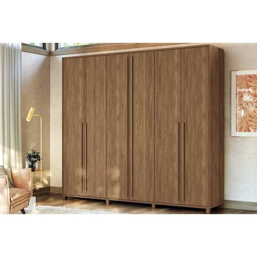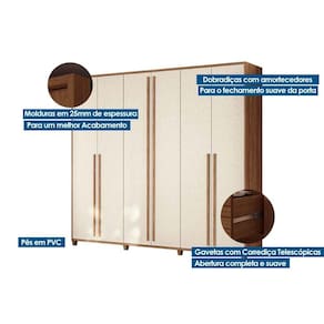 Material de Estrutura - Estrutura 100% MDP Tipo de Pintura - Ultravioleta Tipo de Acabamento da Pintura - Semi Brilho Tipo de Acabamento - Acabamento Baixo Relevo Material de Estrutura Fundo Guarda Roupa - Em HDF Tipo de Rodapé - Possui Rodapé Diferenciais Guarda Roupas - Calceiro - Sapateira - Maleiro - Divisão Ele/Ela
