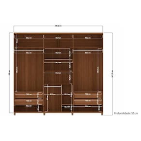 Dimensões(Cm): Comprimento(Profundidade): 51cm x Largura: 261,3cm x Altura: 241,7cm