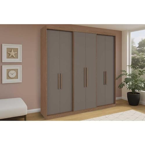 Tipo de Cabideiro - Aéreo Material dos Cabideiros - Cabideira Metálico Tipo de Porta do Guarda-Roupa - Portas de Correr Material das Portas - Portas em MDF Quantidade de Portas - 6 Portas de Abrir Material das Gavetas - Gavetas em MDP Tipo de Corrediça - c/ Corrediças Metálicas Quantidade de Gavetas - 2 Gavetas Material das Prateleiras - Prateleiras em MDP Quantidade de Prateleiras - 9