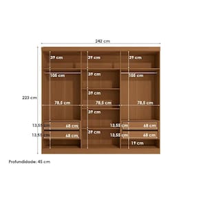 Dimensões(Cm): Comprimento(Profundidade): 47cm x Largura: 242cm x Altura: 218cm
