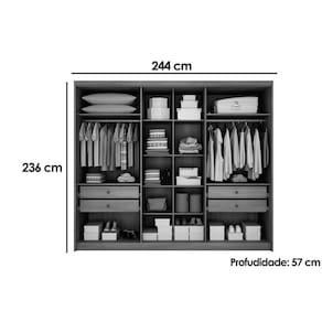 Dimensões(Cm): Comprimento(Profundidade): 57cm x Largura: 244cm x Altura: 236cm