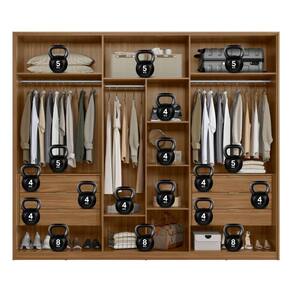 Peso máximo suportado: 4kg cada prateleira e gavetas