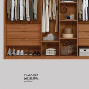 O Guarda-Roupa Casal Atrice combina resistência e estilo com sua estrutura em MDP e acabamento em pintura UV, que garante durabilidade e fácil manutenção. Suas gavetas internas possuem corrediças telescópicas, proporcionando um deslizamento suave, enquanto os puxadores metálicos adicionam um toque de sofisticação. Com cabideiros metálicos e portas de giro equipadas com dobradiças metálicas, este guarda-roupa oferece organização e praticidade para o seu espaço, aliando funcionalidade e design moderno.