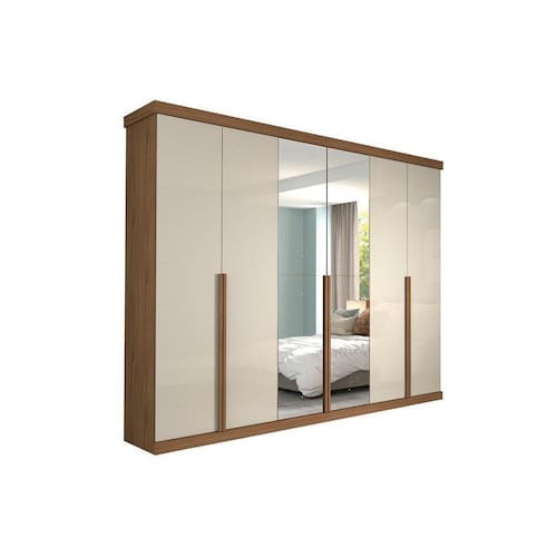 Guarda Roupa Casal 6 Portas e 6 Gavetas c/ Espelho Guarapari Avelã/Off White - Panan