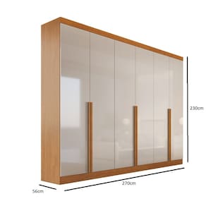 Guarda Roupa Casal 6 Portas em MDF Alvorada Bianchi O Guarda Roupa Alvorada seis portas é sinônimo de sofisticação e funcionalidade. Fabricado com matéria-prima de primeira qualidade em 100 MDF e estrutura reforçada, oferece durabilidade e resistência. Seu amplo espaço interno é dividido no sistema ELE e ELA, proporcionando praticidade na organização. Conta com seis gavetas internas com corrediças telescópicas que garantem deslizamento suave e duradouro, além de um nicho organizador com três prateleiras centrais ideais para acessórios e roupas dobradas. Possui ainda espaço dedicado para roupas longas, cabideiros em alumínio e puxadores em madeira envelopada, que agregam elegância ao design.