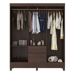 Produzido em MDP com acabamento em pintura UV, o móvel possui estrutura adequada para ambientes residenciais. Conta com cabideiros em madeira revestida, gavetas com corrediças metálicas e portas com dobradiças metálicas, oferecendo estabilidade no abrir e fechar.