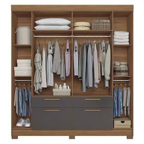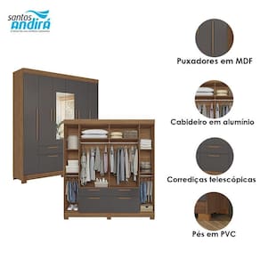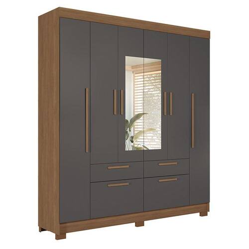 Guarda Roupa Casal 6 portas Guarapuava com espelho Jatobá Grafite - Santos Andirá